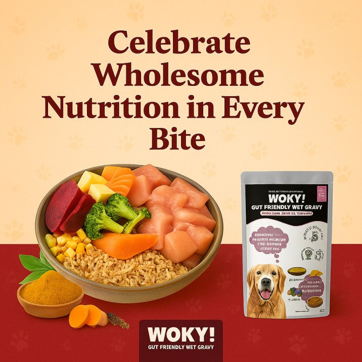 Gut health starts with what’s in the bowl. WOKY! Gut Friendly Wet Gravy Dog Food is a premium, vet-formulated meal crafted specially to support and improve your dog’s digestive health. Made with real, human-grade chicken and absolutely no fillers, preservatives, sugar, or gluten, this nutrient-rich gravy food is both delicious and functional.
